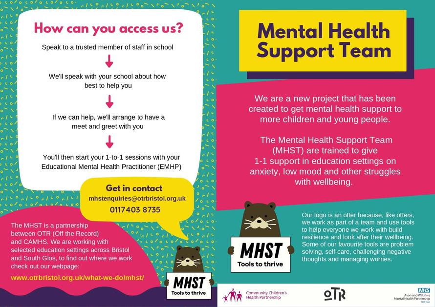 - dedicated and trained staff to support children who are worried about their mental health and services that we can refer children to for further support and help with their emotional and mental health.