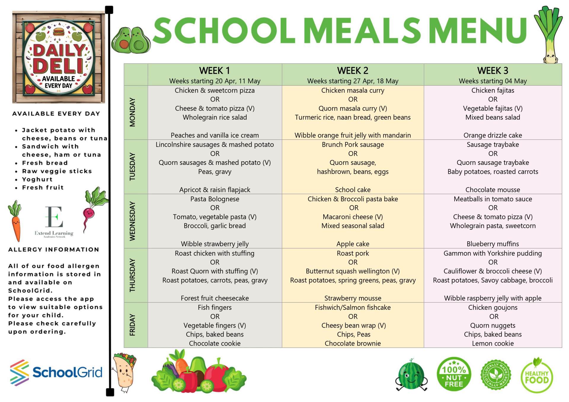 School meals at Locking are provided 'in-house' by ELAN Catering. Our school meals are cooked fresh on the premises in our kitchen. From 2nd September 2025, a school meal is priced at £2.61 per day/per child for those not in receipt of Free School Meals.
